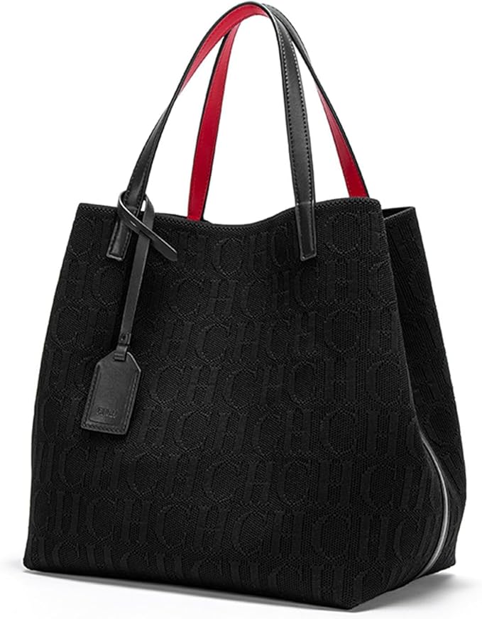 CHCH Womens Handbag Large Capacity Shopping Tote Simple Casual Commuter Bag   About this item DIMENSIONS: Large capacity tote measuring 28 cm height, 27 cm length, and 20 cm width, perfect for daily essentials LIGHTWEIGHT DESIGN: Weighs only 0.6 kg, making it comfortable for extended carrying during shopping or commuting STYLISH PATTERN: Features an elegant textured pattern throughout the black fabric exterior with contrasting red interior trim PRACTICAL FEATURES: Spacious main compartment with dual carrying handles and durable construction for everyday use VERSATILE USE: Ideal for shopping, work commutes, or casual outings with ample space for personal belongings