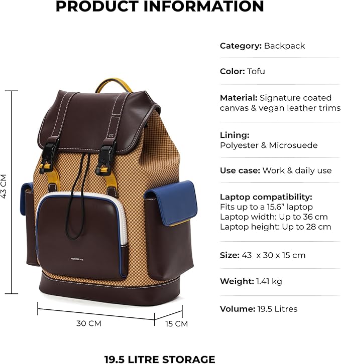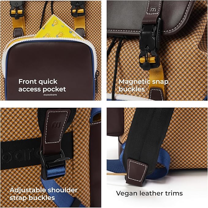 MOKOBARA Teriyaki Backpack | 15.6 Inch Laptop Compartment, 19.5L Capacity | Signature Coated Canvas & Vegan Leather Trims, Water-Resistant, Lightweight | Padded Back Panel About this item SPACIOUS & ORGANIZED: The Teriyaki Backpack offers a 19.5-liter capacity with multiple compartments, including a main compartment, front quick access pocket, and side pockets, ensuring you can carry all your daily essentials in an organized manner. ERGONOMIC DESIGN: Featuring padded, adjustable shoulder straps and a breathable back panel, this backpack provides superior comfort and support, reducing strain on your shoulders and back, making it ideal for extended periods of use. DURABLE &…